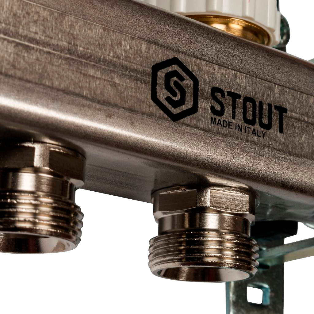 | Коллекторный блок из нерж стали с расходомерами 7 вых. (с кронштейнами)(STOUT) | Артикул SMS 0917 000007 | Размер 7 выходов |