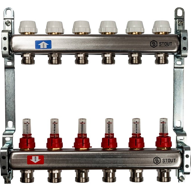 | Коллекторный блок из нерж стали с расходомерами 6 вых. (с кронштейнами)(STOUT) | Артикул SMS 0917 000006 | Размер 6 выходов |