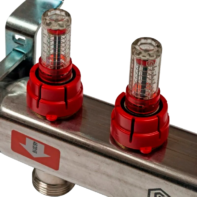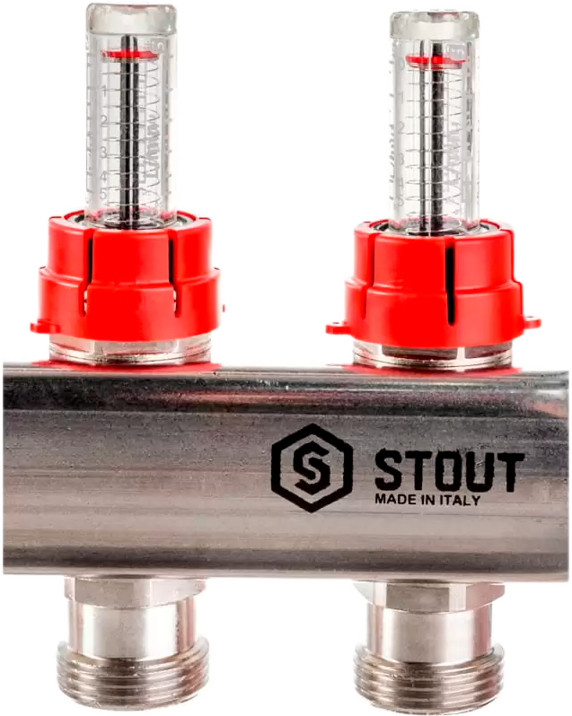 | Коллекторный блок из нерж стали с расходомерами 4 вых. (с кронштейнами)(STOUT) | Артикул SMS 0917 000004 | Размер 4 выхода |