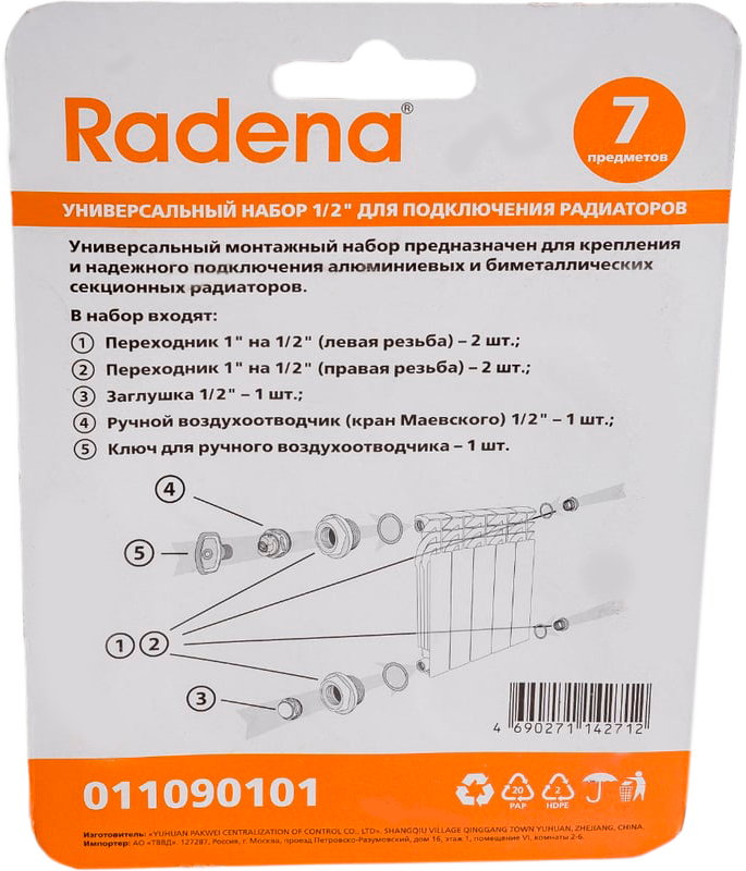Универсальные монтажные комплекты RADENA предназначены для установки алюминиевых и биметаллических радиаторов и их подключения верхнего и нижнего коллекторов с внутренней резьбой G1".
