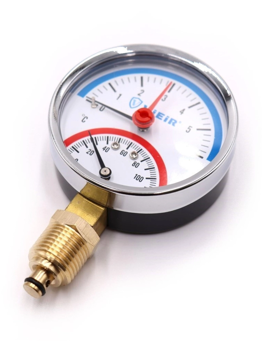 ViEiR Термоманометр 1/2", вертикальный (80 мм/6 бар) (YE6). ViEiR Термоманометр с вертикальным подключением применяют для контроля избыточного давления жидкостей или газов, контролируемая среда не должна быть вязкой, кристаллизующейся, а также их температуры до + 120 °C.