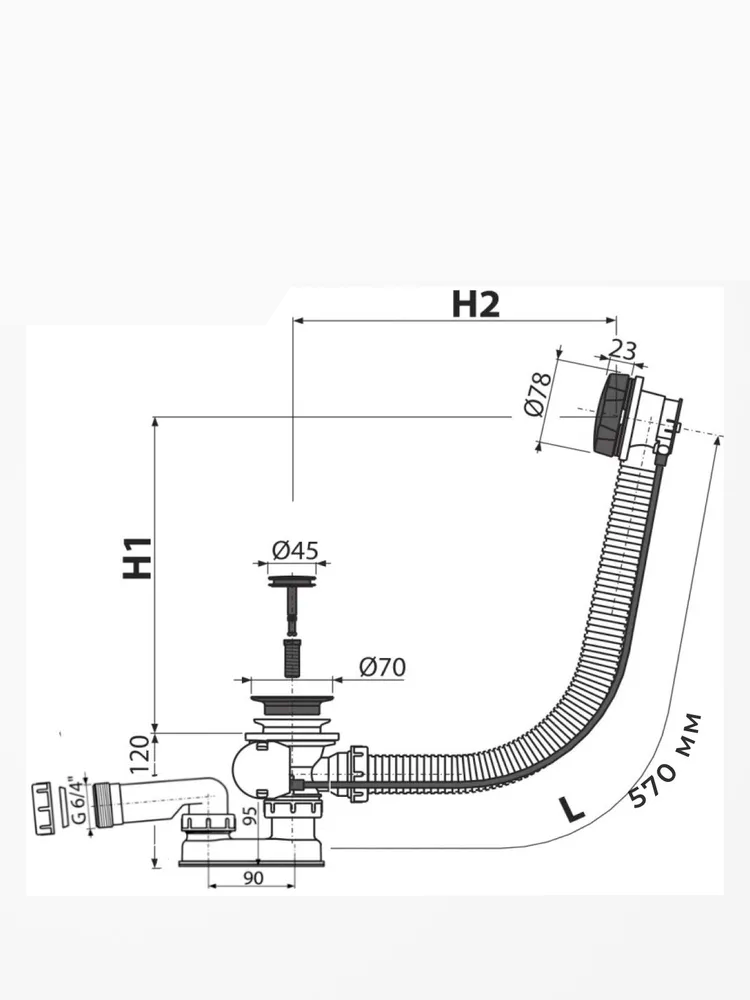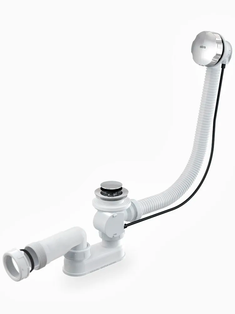 Классический сифон для ванны от чешского производителя ALCAPLAST. Сделан из высокопрочного пластика, который не боится экстремально высоких и низких температур, а также воздействия агрессивной бытовой химии. Подходит для большинства современных моделей ванн толщиной до 10 мм. Белая пробка слива и заглушка перелива придадут вашей ванне элегантный и современный вид.