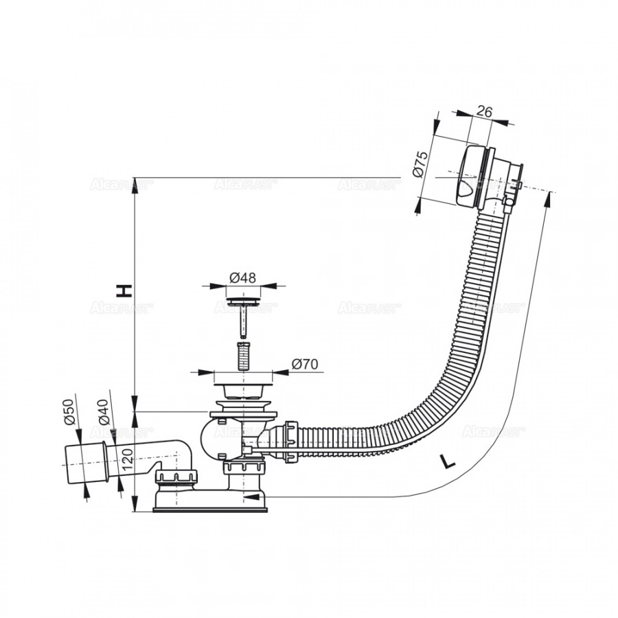 Длина сифона - 57 см.