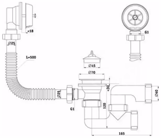 Основным преимуществом плоского сифона для ванны является его монтажная высота, которая позволяет его установку на ванны с низкими ножками. Сифон имеет возможность регулировки по трем направлениям: вокруг выпуска ванны, изменение направления слива воды в канализацию при помощи уголка, изменение высоты сифона при помощи уголка (минимальное). Форма сифона позволяет поддерживать хорошую пропускную способность слива сточной воды, выполняя свою главную функцию - формирование гидрозатвора для отсечения неприятных запахов из канализации.