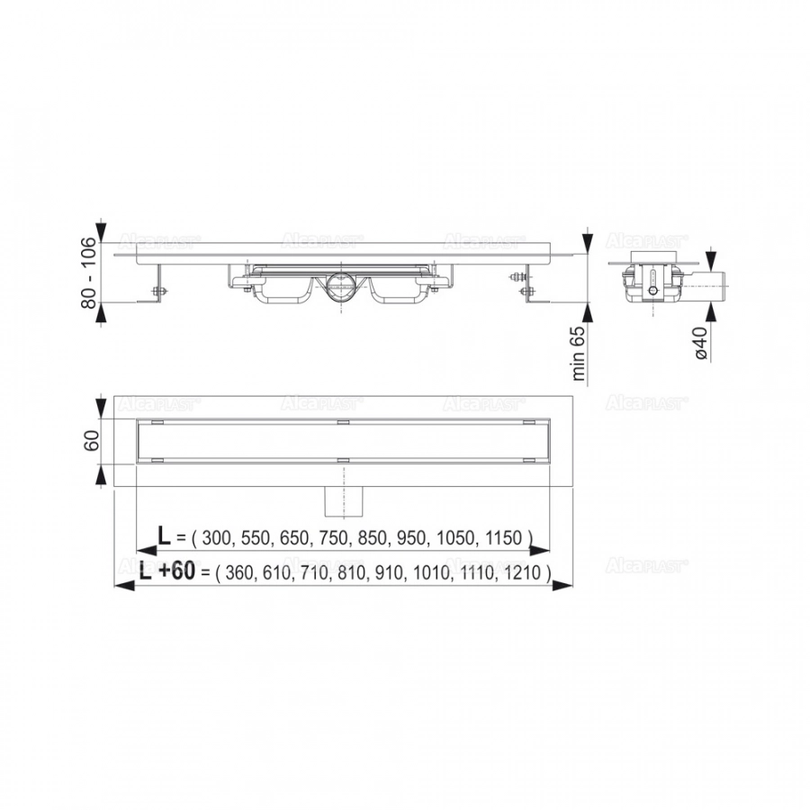 Для использования внутри помещений Для водоотведения в душевых на уровне пола Может располагаться в пространстве или непосредственно у стены Для цельной решетки Для безбарьерного доступа Для монтажа в пространстве с ограниченной высотой пола Свойства: Водоотводящий желоб из нержавеющей стали (обработанной методом травления и пассивации, а также прошедшей электрохимическую полировку) Предназначен для цельных решеток из нержавеющей стали, закаленного стекла, искусственного камня и их различных комбинаций. Высота монтажа от 65 мм Регулируемый по высоте Сифон прочно соединяется с желобом и гарантирует 100% водонепроницаемость Самоклеящиеся ленты для качественной гидроизоляции Вручную легко чистящийся сифон, вплоть до сточной трубы Воротник и гидрозатвор защищены специальной пленкой, лоток для решетки защищен вкладышем из пенопласта Высокая скорость стока возможна благодаря двухкамерному сифону Гарантия 25 лет Материал желоба: нержавеющая сталь AISI 304, DIN 304, ČSN 17240 Материал сифона: полипропилен Нормы и стандарты: ČSN EN 1253 Технические параметры: Гидрозатвор 28 мм Скорость стока воды 32 л/мин. Сопротивление гидрозатвора 575 Па Диаметр сливной трубы 40 мм Минимальная толщина бетона 65 мм Общая высота монтажа (H2) 80 – 106 мм Максимальная нагрузка 300 кг
