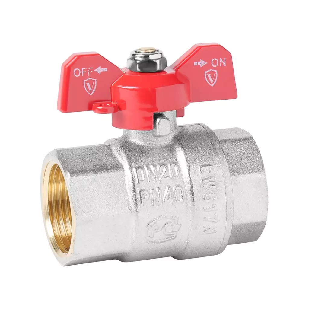 | Кран шар в/в бабочка 1"F/F( Б) красный, никель ViEiR | Артикул VR201-03 | Размер 1" | Цвет никель | Уп. малая 10 | Уп. большая 60 |