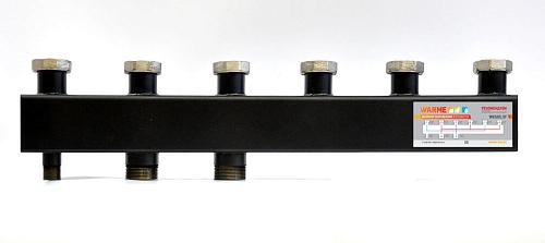 Распределительный коллектор Warme состоит из двух камер подающей и обратной линий теплоносителя. Внешний вид распределительного коллектора состоит из части цельной стальной профильной трубы со встроенной внутренней второй камерой, металл коллектора отшлифован, обезжирен, обработан антикоррозийным покрытием. Каждый распределительный коллектор Warme покрашен высококачественной эксклюзивной порошковой краской при температуре 200 С. Которая придает эстетичный вид коллектору и не требует закрывать коллектор в изоляцию или защитный кожух. Для дальнейшего распределения тепла на распределительном коллекторе Warme WKS80.2B имеются патрубки с наружными резьбами размером 1". Патрубки входящей и обратной линий находятся между собой на расстоянии 125 мм, что позволяет устанавливать группы быстрого монтажа Warme Maske, группы быстрого монтажа Staut, группы быстрого монтажа Maibes(Германия), группы быстрого монтажа Barberi (Италия), и другие. Насосные группы имею размер подключения 1 1/2", соединить с патрубками на коллекторе рекомендуется через разъемные соединения - накидные гайки 1" на 1 1/2 ", входящие в комплект циркуляционного насоса.