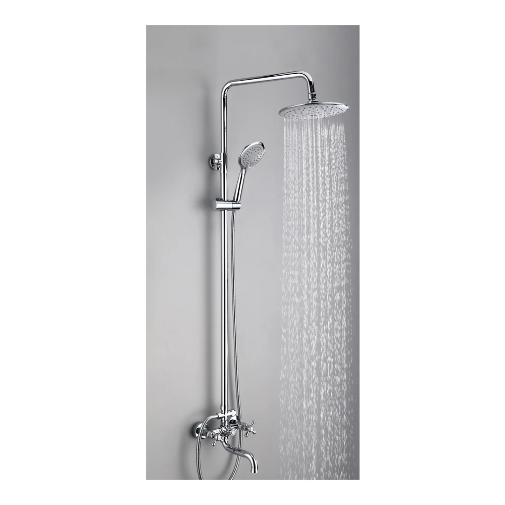 Описание: Душевая система с тропическим душем, смеситель с двумя рукоятками и поворотным изливом