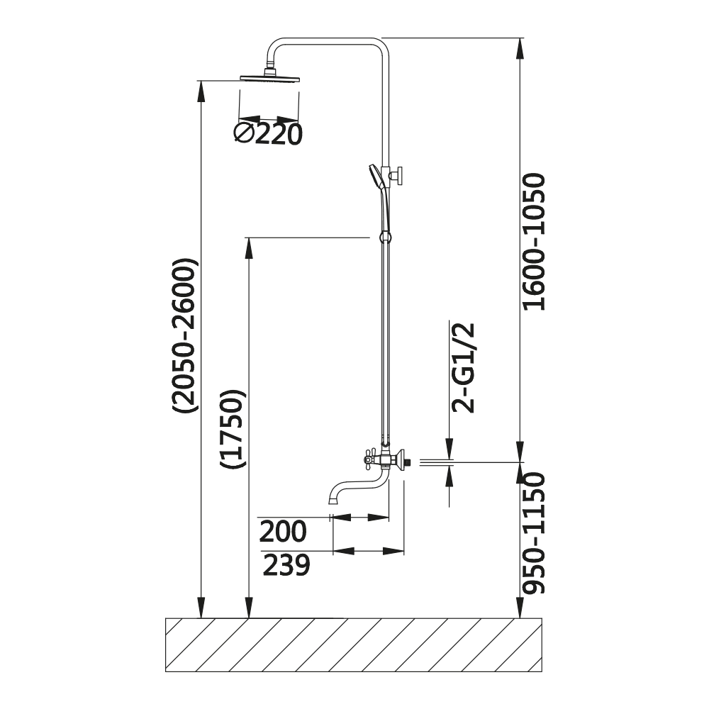 В комплекте: Душевой шланг 1,5 м (нерж.сталь), «тропическая лейка», душевая лейка 3-х режимная, эксцентрики — 2 шт, отражатель — 2 шт, регулируемое по высоте крпление для лейки, комплект прокладок, настенное крепление