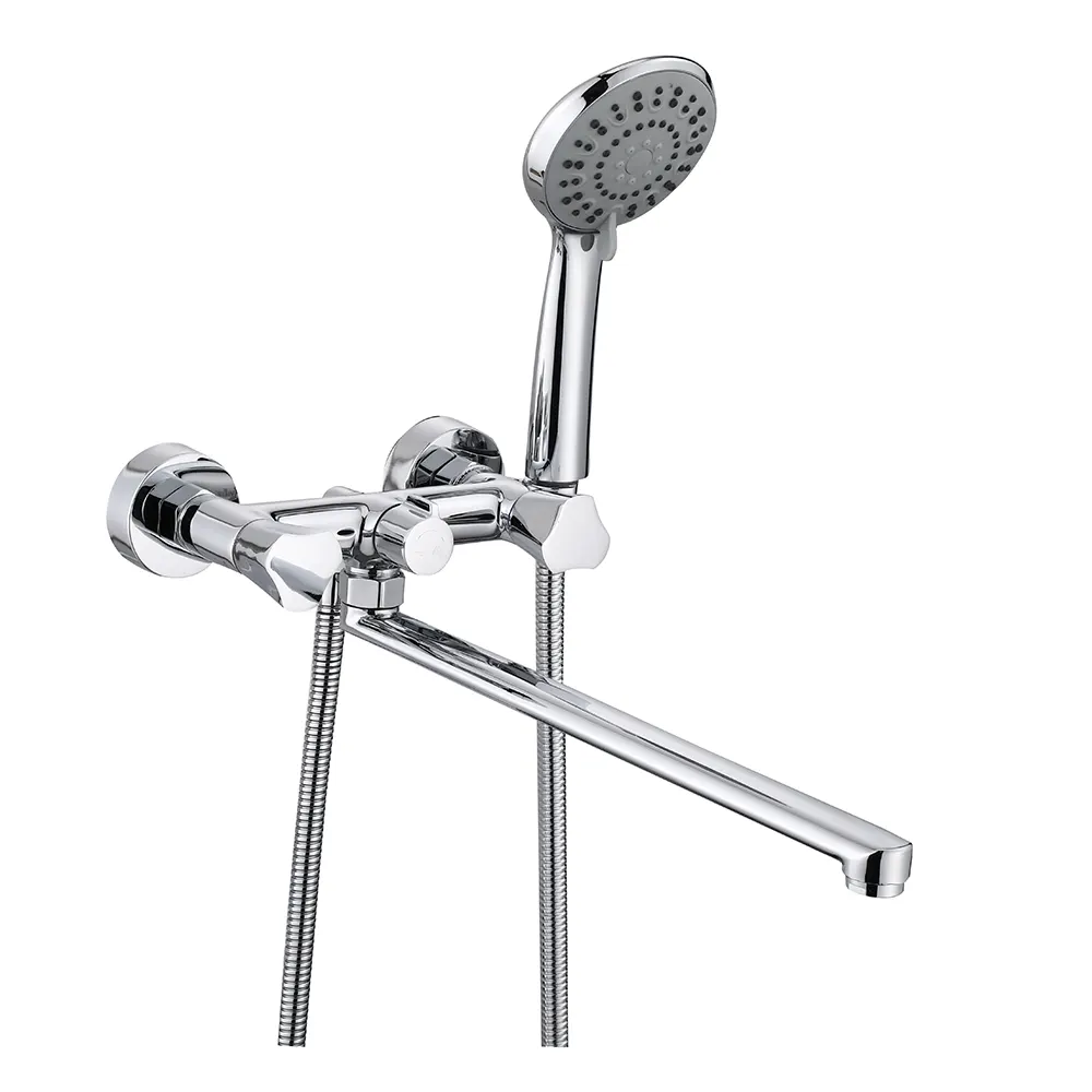 В комплекте: Душевой шланг 1,5 м (нерж.сталь), крепление для лейки, душевая лейка 3-х режимная, запасной аэратор с ключом, эксцентрик — 2 шт, отражатель — 2 шт, комплект прокладок