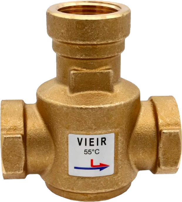 ViEiR Трехходовой термостатический антиконденсационный клапан 1" 55C VR238A. Запорно - регулируемая арматура арматура ViEiR соответствует высоким стандартам качества, надежности и долговечности. Противоконденсационный клапан используется, как правило для котлов напольного размещения. Основная задача изделия сохранение накопленной теплоносителем температуры, таким образом конденсат не образуется в дымоотводящих путях и стенках котла.